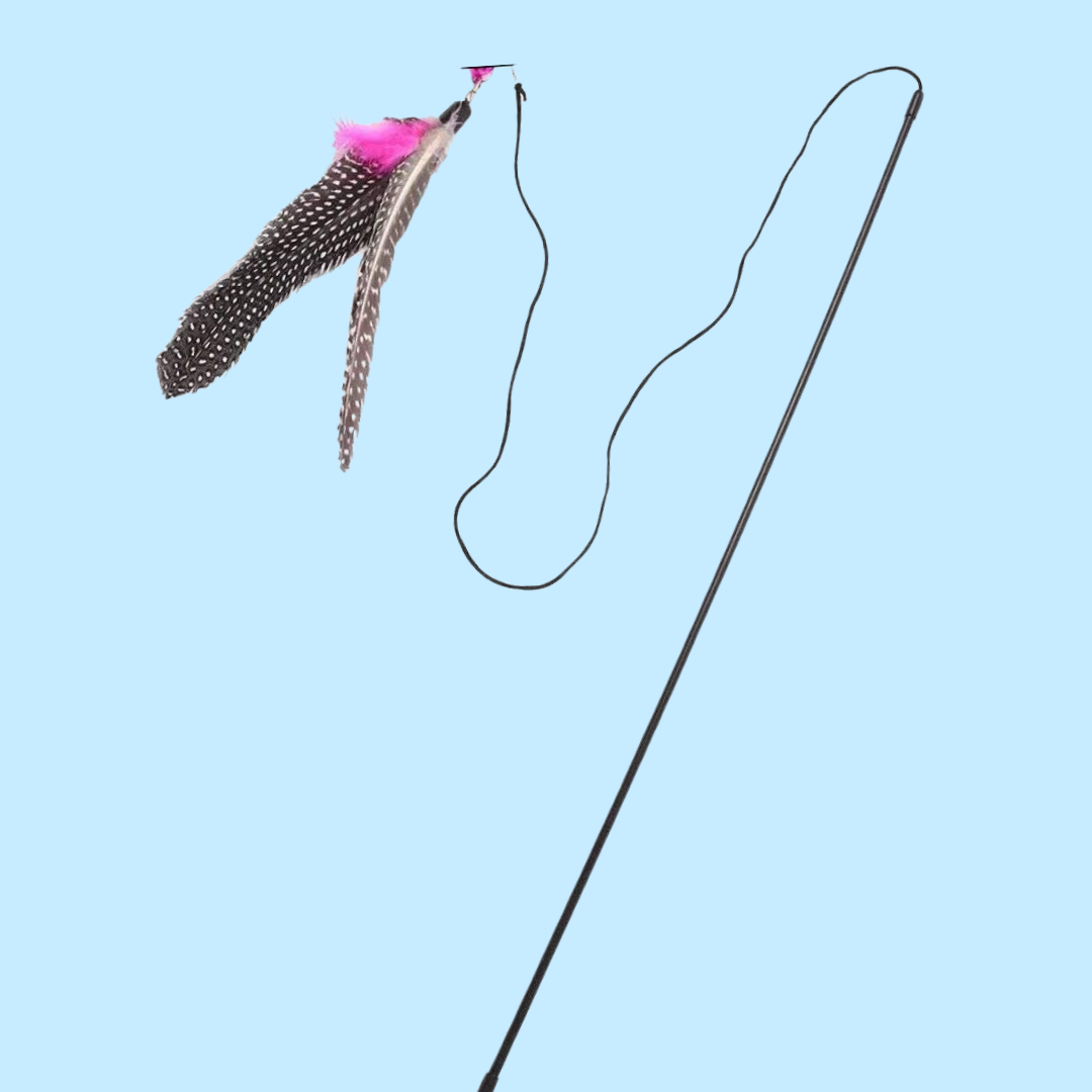 This wand toy will have your cat jumping for joy! The long string and 36" wand mean you can have your cat pouncing across the room and in the air- and all that activity is important for their mental and physical health. It comes with the classic feather attachment that twirls in the air, but you can easily clip in new attachments to keep your kitty guessing what new fun toy is going to twirl in the air next!