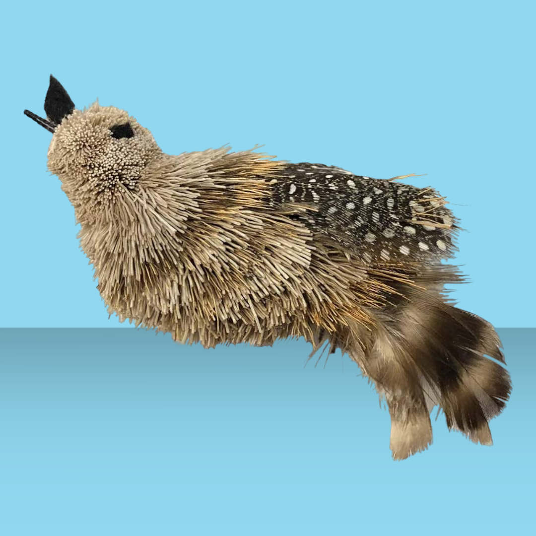 This little birdie will have your cat leaping for joy! The tail feathers will wiggle as it flies through the air, and the body of the bird has just the right feeling when they bite down, giving the satisfaction of having caught their prey. This is meant to be clipped to Da Bird wand toy, but can also be played with on its own.